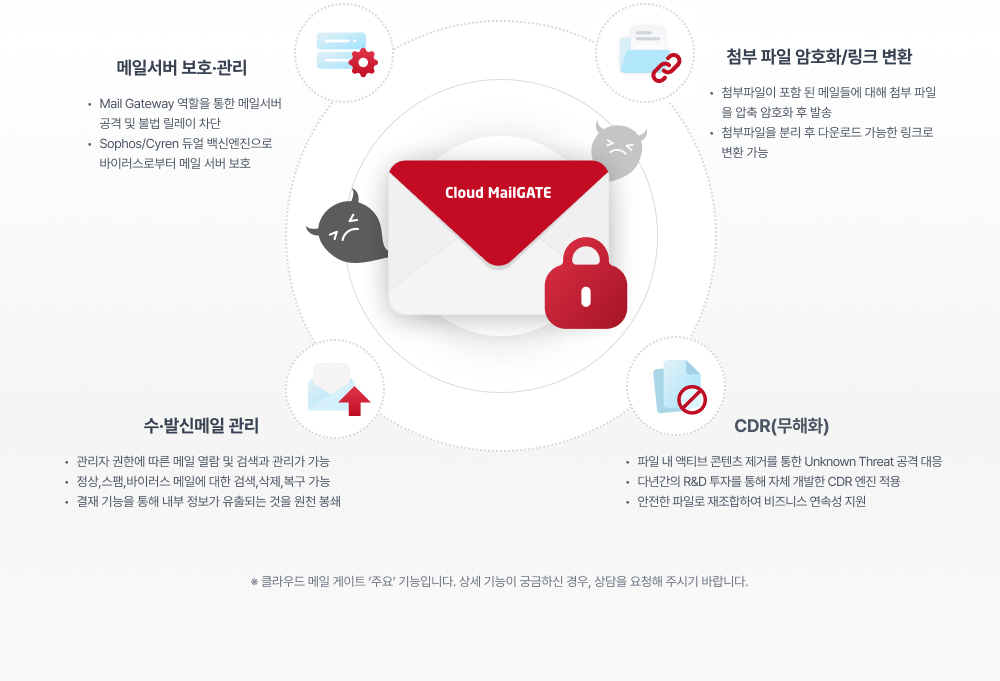 초기 구축 비용이 없고, 구독형 상품으로 가장 경제적인 메일 보안 시스템