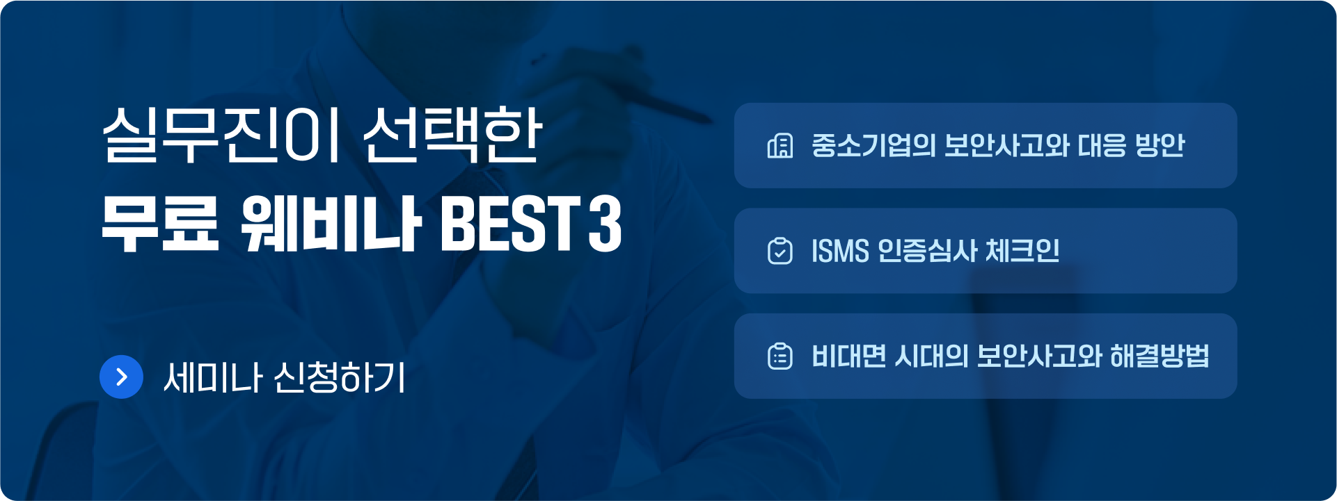 보안 업무를 처음하는 담당자에게 큰 도움이 됐던 웨비나였습니다. 회사 보안의 기준점을 세우는 데에 큰 도움이 됐습니다.
