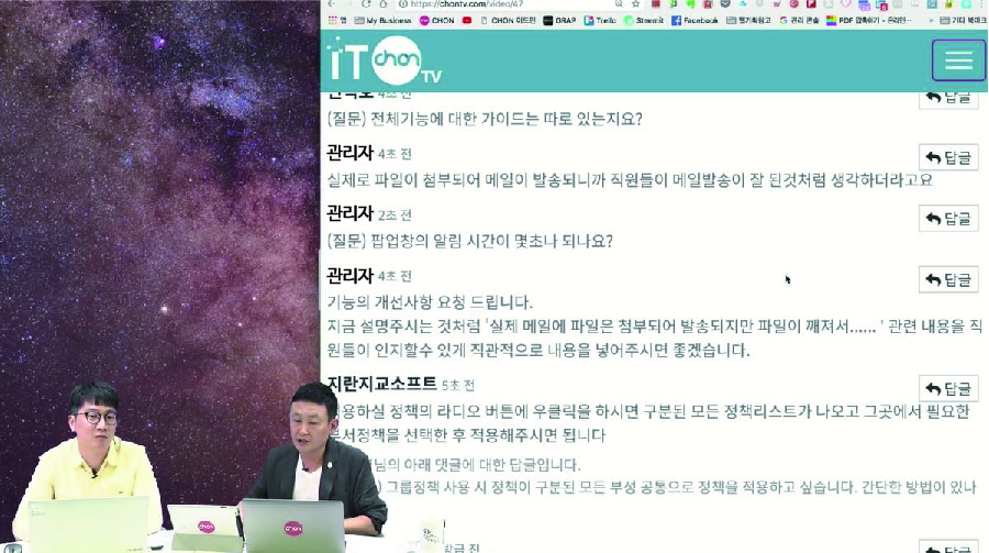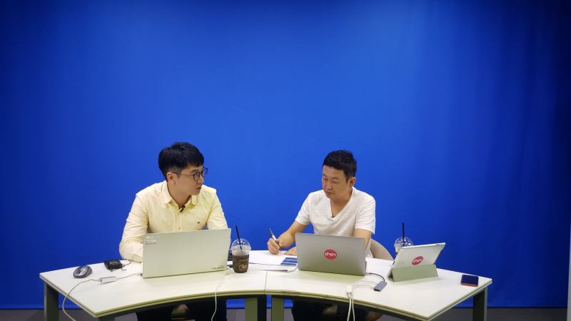 실시간 방송 플랫폼을 운영하시는 촌TV 대표님의 사전 예행 모습입니다.