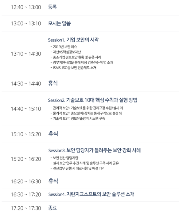 13회 중소기업 보안세미나는 이렇게 총 4개의 세션으로 진행되었습니다.