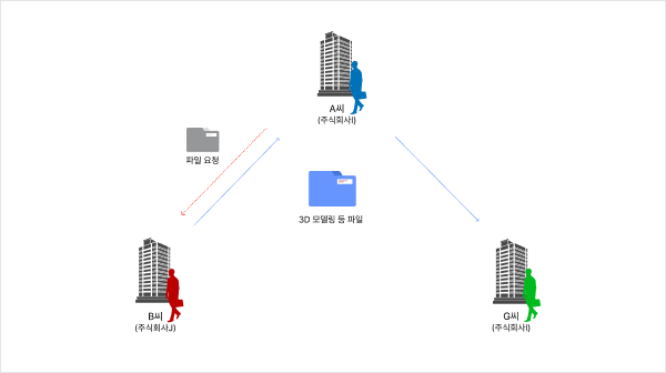 주식회사I로 이직한 A씨는 주식회사J(피해 회사)에 근무하고 있는 B씨를 통해 ‘Z축 로봇 3D 모델링’등 파일을 받아 G씨에게 전달하며, 수정 설계를 요청하였습니다.
