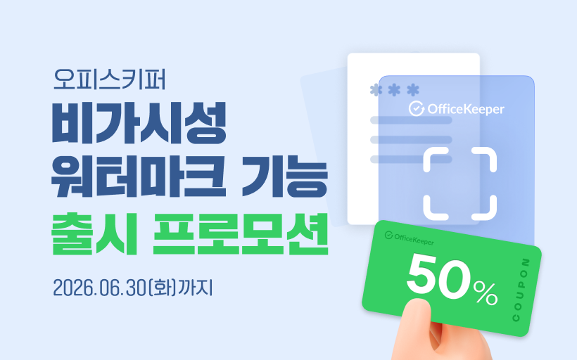 출력물 보안 기능을 도입하는 신규 고객 누구나 50% 할인된 가격으로 오피스키퍼를 만나보세요.
