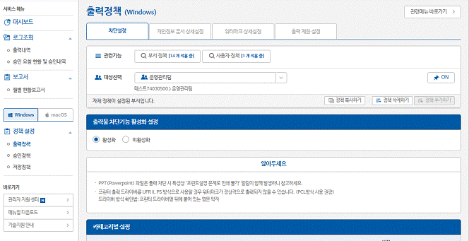 오피스키퍼 Windows OS 버전에 "소프트웨어별 출력 제한" / "워터마크 QR 코드 출력" / "승인 요청 기준(문서 1건 출력)" 이 새롭게 추가 되었습니다. 👍